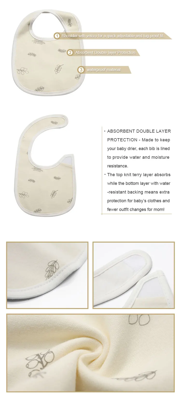 COLORLAND LOW MOQ OEM 3 pieces adjustable baby drool bibs organic cotton baby bibs