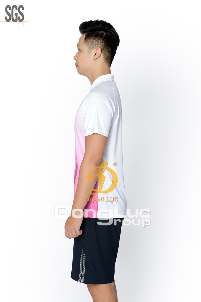 This short-sleeve T-shirt for men and women which is stylized with collar and sublimation prints is made of functional material which features extremely quick water absorbing ability, making it suitable for all sport activities. Very well form fitting.