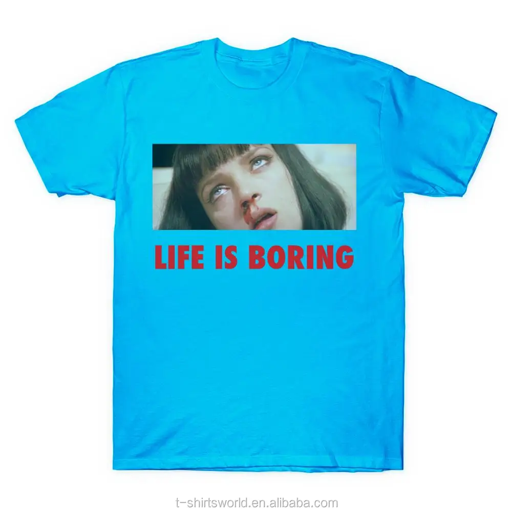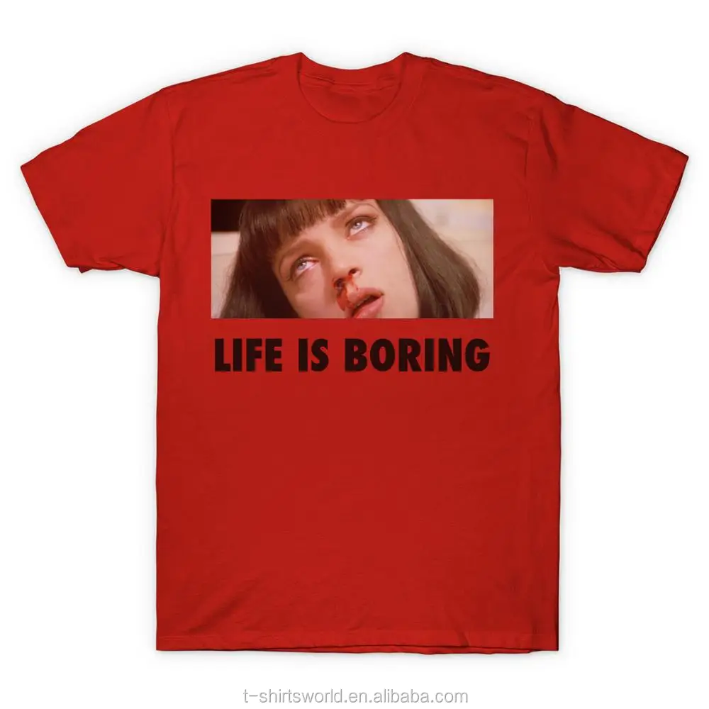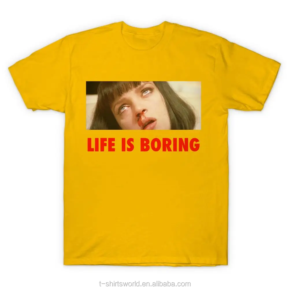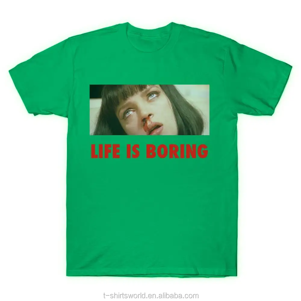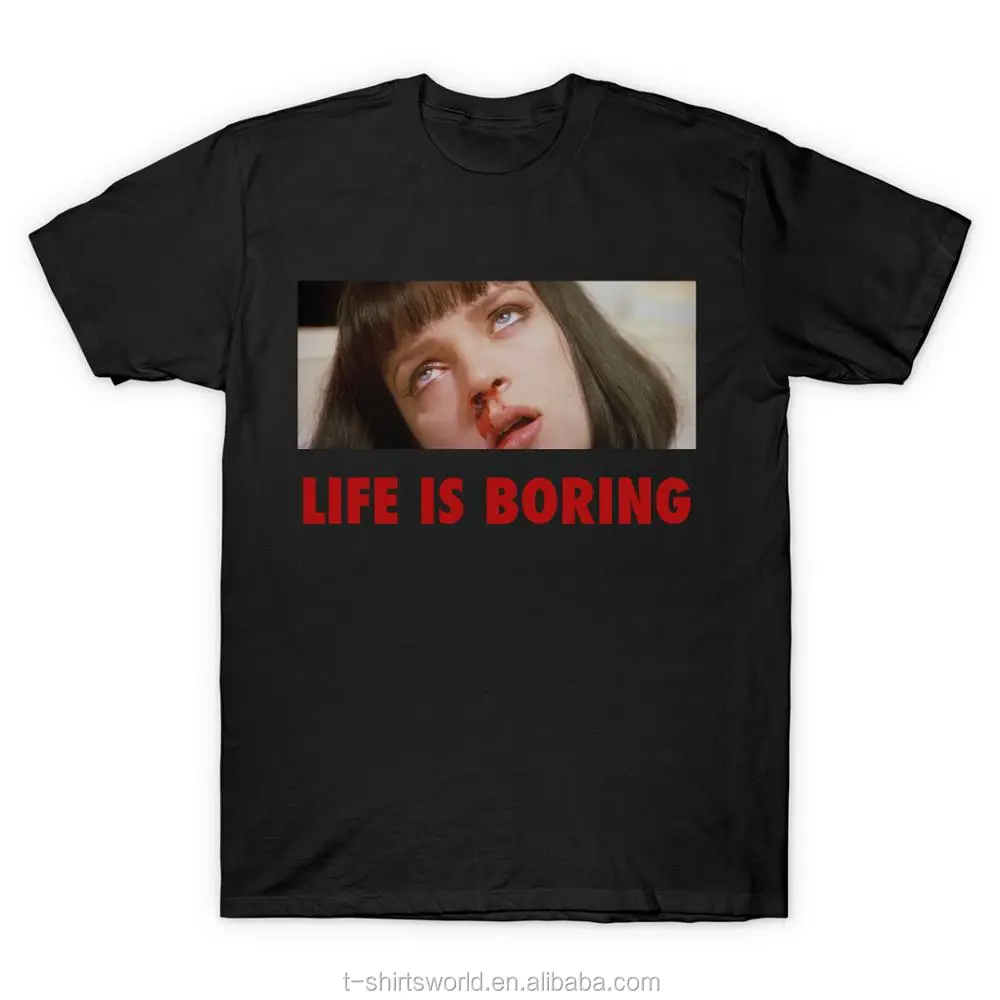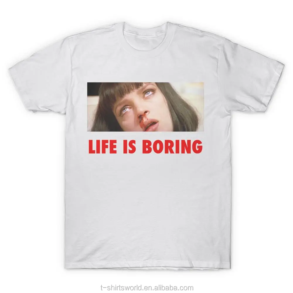 Spoof Harajuku Pulp Fiction T-shirt Summer Novelty Femme Mia Wallace Life is Boring Letter Print Women Men Unisex Tshirt