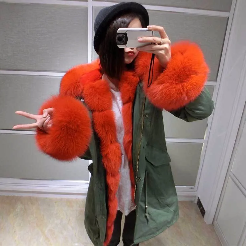 Winter Women’s Fox Fur Coat Warm Hood Parka Ladies Long Trench Jacket Outwear fashion winter coats