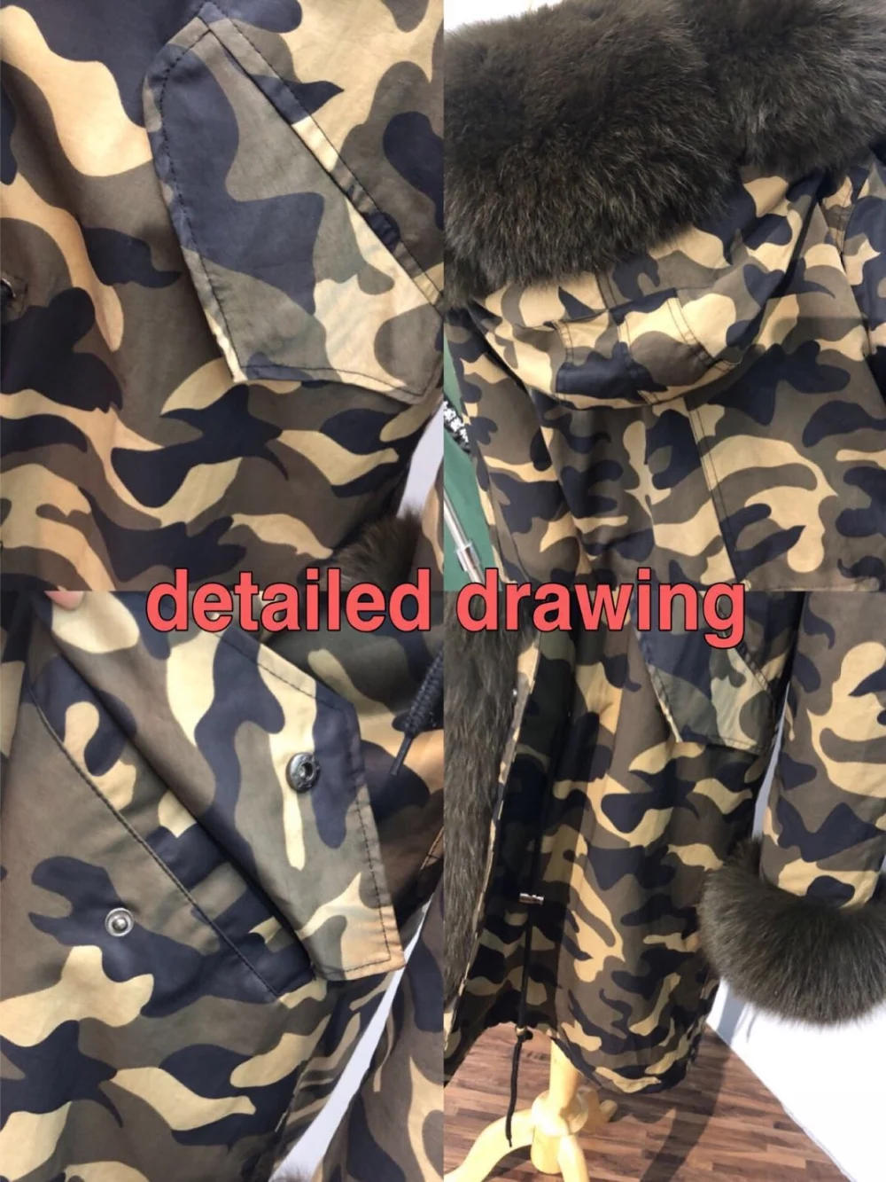 Classic style pike; the inner layer of Rex rabbit hair made from the entire skin is soft and smooth, warm and top-notch, and the collar and cuffs are all Fox Skins, giving meticulous and intimate care in the place of the overcoat. Even in cold places, it’s very warm and caring.